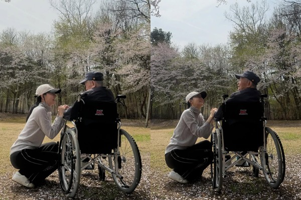 이영애, 휠체어 탄 父 곁에서 '눈물 핑' 도는 효심 [스한★그램]