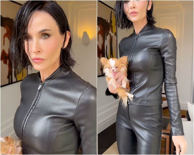 '7억 성형설' 63세 데미 무어, 단발+초밀착 가죽 패션..할머니 맞나