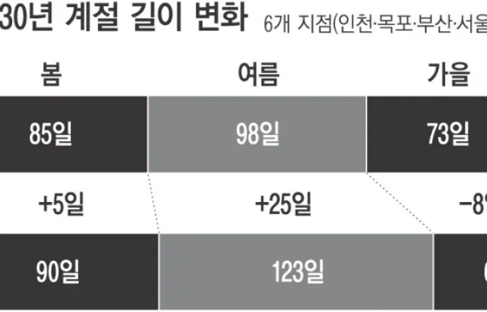 여름 25일 늘고, 겨울 22일 줄어…‘사계절 뚜렷한 한국’ 옛말
