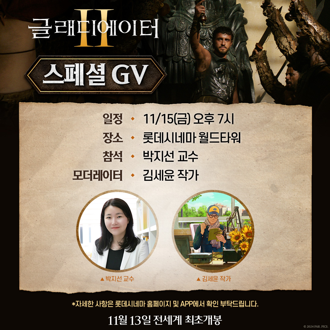 '글래디에이터2' 박지선 교수 스페셜 GV 개최…깊이 있는 캐릭터 분석!