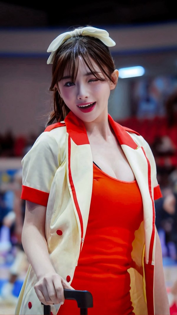 김나연, 뽀얀 피부 대비되는 오렌지빛…'치어리더계 원톱 비주얼' [스한★그램]