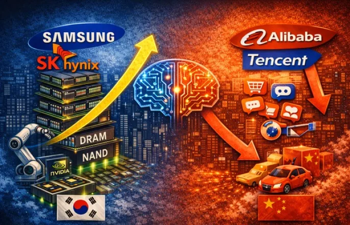 삼성·SK하닉 시총, 알리바바·텐센트 제쳤다…“AI 투자 축 이동 신호”