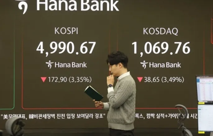 "조정 시작?" 코스피, 5000도 못 지켰다…시총 100위 중 상승 '단 4개'